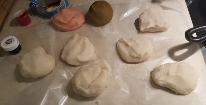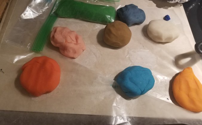 Note: The food coloring will get on your hands, but if you keep kneading it will come off of your hands and work back into the dough. Wash your hands between batches to prevent muddy colors if there is any left on your hands.